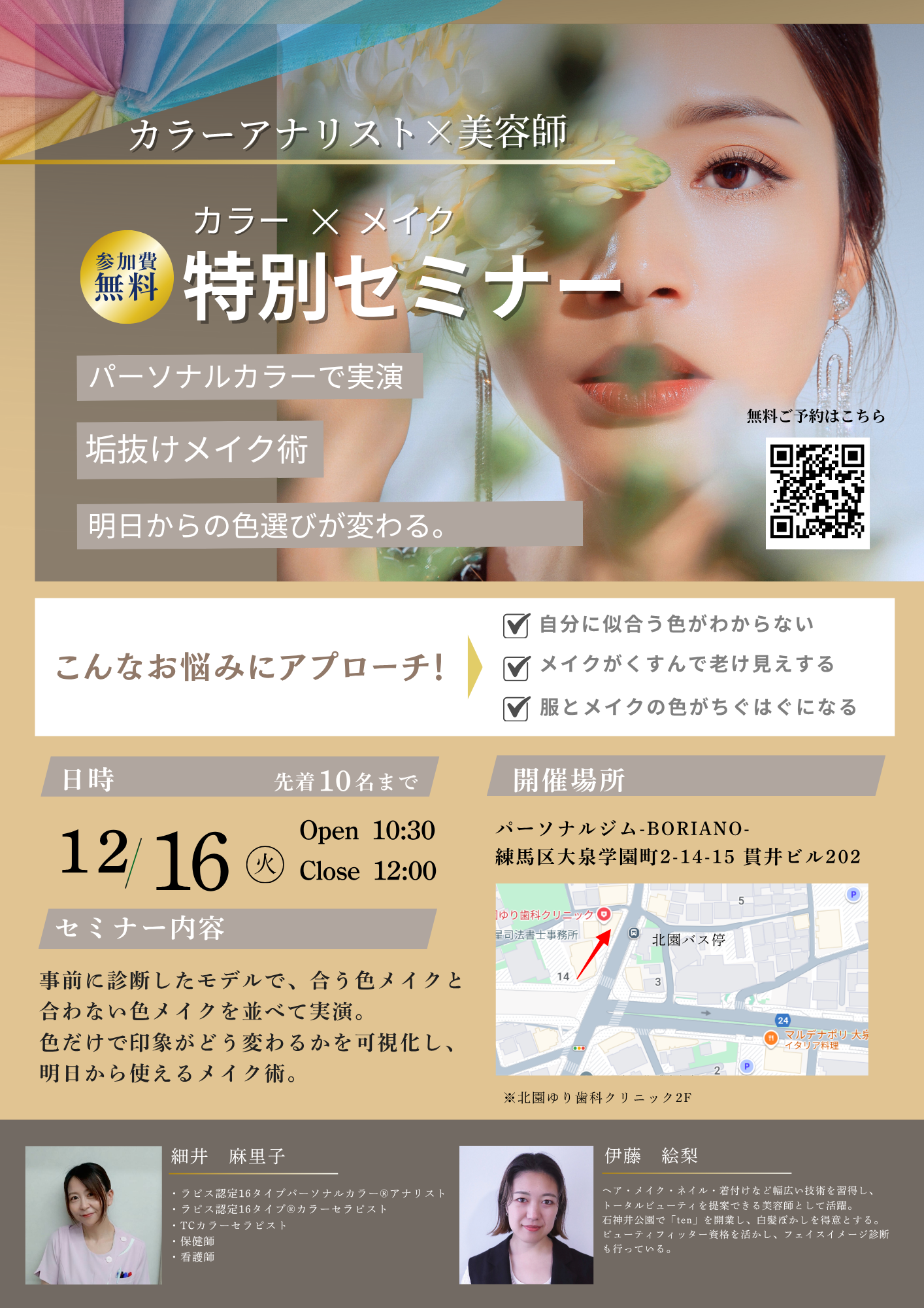 #パーソナルカラー #メイクセミナー #垢抜けメイク #カラー診断 #自分に似合う色 #大泉学園 #練馬区イベント #BORIANO #無料セミナー #カラーアナリスト